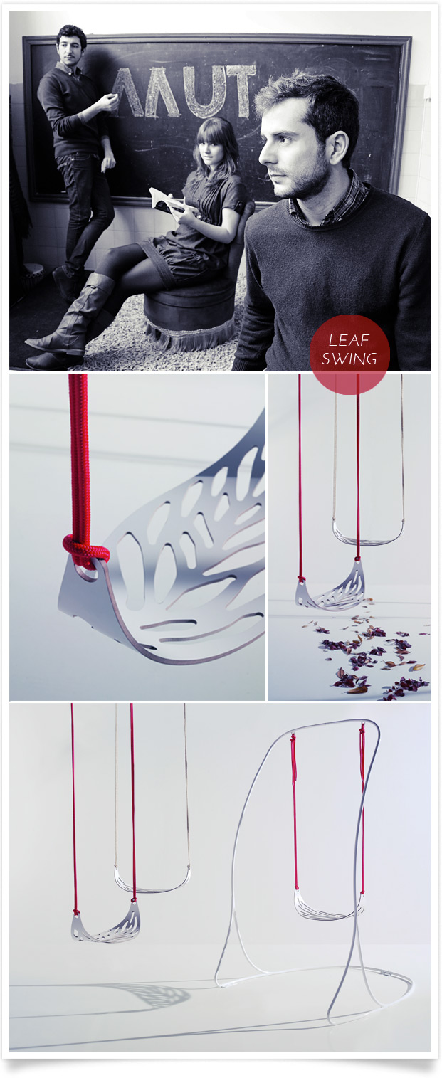 LEAF is an adult swing designed by Alberto Sánchez. This swing, inspired by falling leaves in autumn, was created to evoke special childhood memories and is at its most beautiful where the sun can cast delicate shadows through its unique design. I can just imagine!